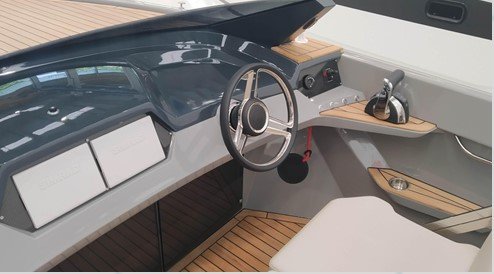 Combinando as melhores características de barcos de passeio e esportivos, a GHOST 26 oferece a livre mobilidade, juntamente com a proteção e o belo exterior do para-brisa esportivo, normalmente conhecido dos modelos runabout clássicos. Em essência, ele oferece uma experiência totalmente nova e única. O console de direção foi projetado para uma navegação sem esforço, proporcionando uma interface extremamente amigável, onde tudo está ao alcance do capitão. A tela sensível ao toque interativa também inclui informações de navegação incluindo, gps, velocidade, consumo de combustível, controles de luzes, etc.