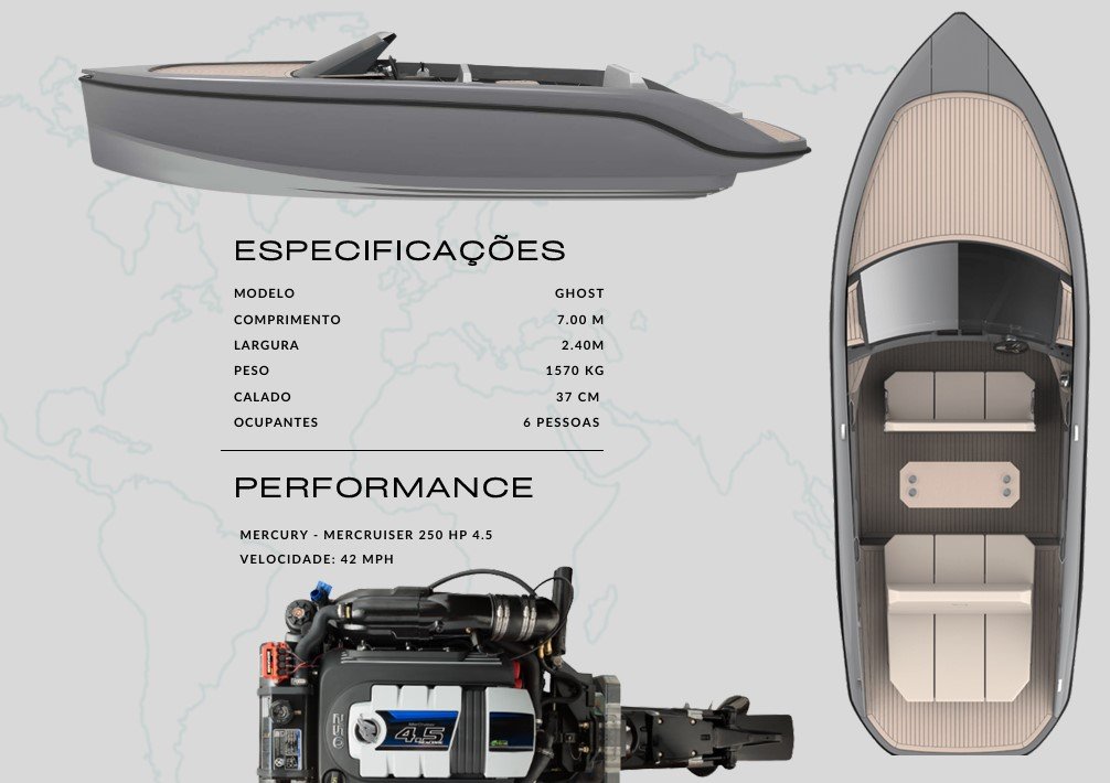A GHOST 26 é um dos barcos a motor de luxo mais impressionantes disponíveis no mercado. Com um design clássico inspirado em lanchas esportivas, a GHOST atende aos padrões estéticos mais exigentes, ao mesmo tempo que encanta aqueles que buscam um desempenho excepcional e um acabamento impecável. Este modelo reinventa todas as classes de embarcações ao incorporar os melhores elementos de design, proporcionando mobilidade sem restrições, além da proteção de um exterior deslumbrante, acentuado por suas linhas esportivas e um para-brisa fumê ou translucido.